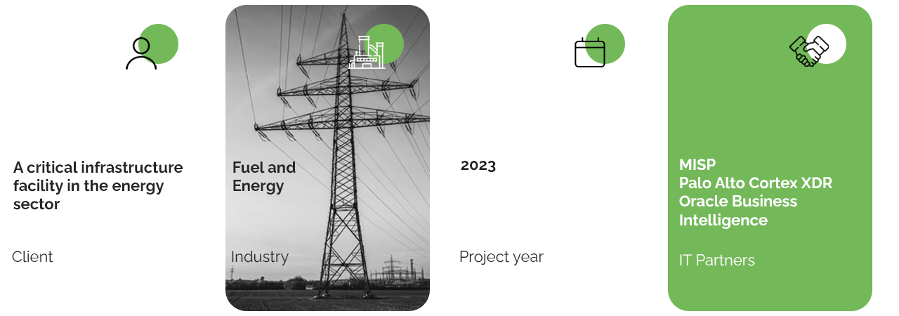 The implementation of a comprehensive data exchange platform based on MISP, Palo Alto Cortex XDR, and Oracle Business Intelligence solutions, along with a series of training sessions by the ALESTA team and post-support for the client over the following months, significantly improved workflows among energy sector branches: